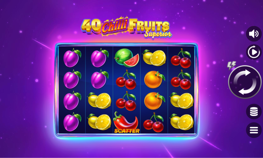 40 Chilli Fruits Superior takes the classic fruit machine look and launches it straight into orbit. The reels spin against a deep purple space background, comets drifting past while a smooth lounge jazz track plays. But you can still hear that unmistakable mechanical reels churn!