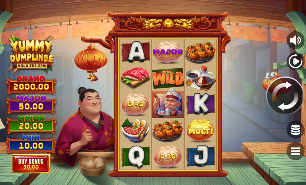 The reels are loaded with gyoza, sushi rolls, bao, and the WILD spelled out in strips of salmon sashimi. The real feast starts when the bonus dumplings land. Grab 6 or more in a single spin to trigger the Hold the Spin feature.