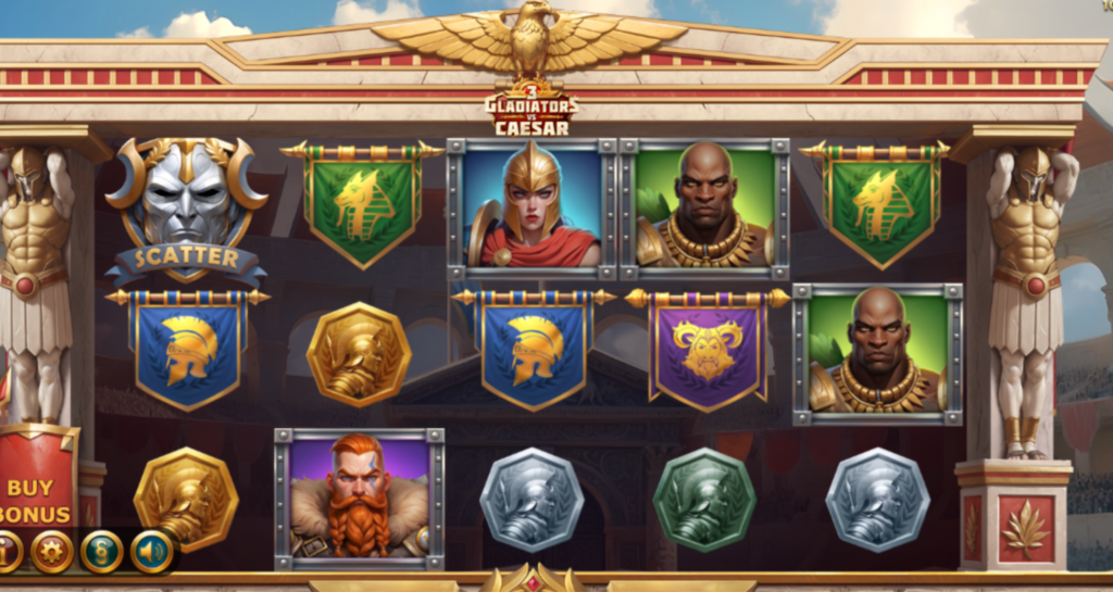 There is also Free Spin Battle, where high-pay symbols are replaced with a gladiator of your choice who throws their weapon at the reels, awarding wilds. Also, if you manage to hit Caesar, you’ll unlock extra spins.